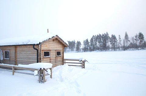 After a short but nonetheless fantastic snowmobile ride, I arrived at Bengan’s sauna raft, River Rafter.