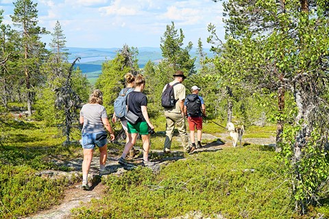 The hike up to the top is about 2,5 km and you will be rewarded with a stunning view over mountains, valleys, and waters, both along the way and at the summit. You can camp here, and there is a campfire site and a hut with a stove at the top of the mountain. In summer and autumn, edible mushrooms and berries grow in the area. Be careful not to litter in this well-preserved area.